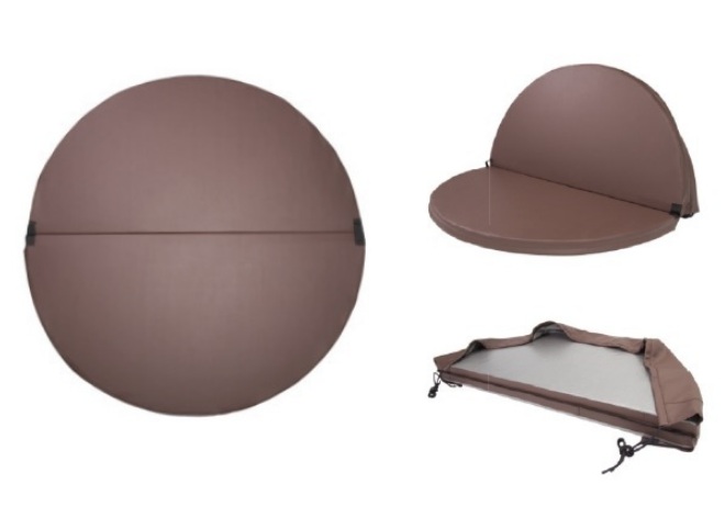 Термокрышка купели выполнена из синтетического утеплителя с жестким каркасом. По периметру изделие обтянуто влагостойкой винилискожей.